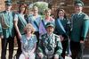 Schützenkönig Henning Landwehr "früher genannt Inge" mit Maria Landwehr "die Waldfee", den Adjutanten Henning Kriedemann und Uwe Grädtke sowie den Ehrendamen Bianca Förster, Janine Greke, Jenny Pinkes und Birgitt Grädtke.
